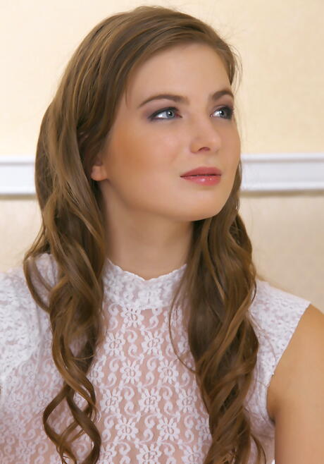 Met Art: 穿着内衣的黑发诱人少女 Kate E 露出小乳房并张开双腿