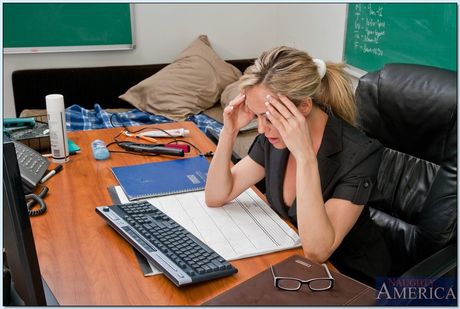 Naughty America: 成熟女教师布兰迪-洛芙脱衣展示大奶子和大屁股
