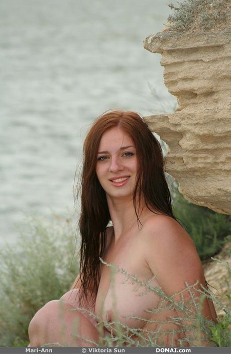 Domai: 裸体白人少女玛丽-安在河边展示丰满乳房