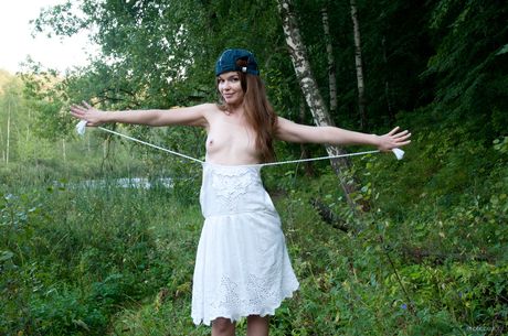 Erotic Beauty: Nedda A 脱下白色连衣裙,裸露着倒在地上的身体
