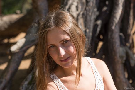 Erotic Beauty: 漂亮女孩 Lenta 在河边裸体展示毛茸茸的阴部