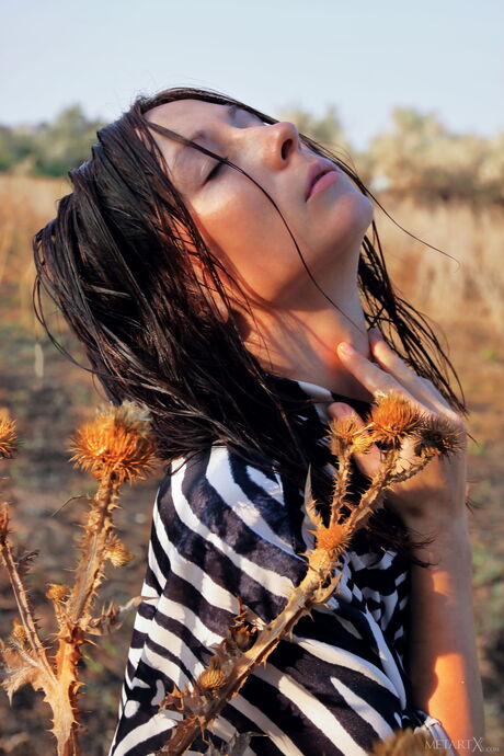 Met Art X: 黑夜 A 脱下黑色鱼网连裤袜,在田野中凸显性感身材