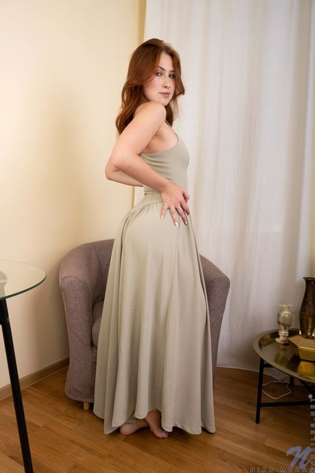 Nubiles: Nika Murr 脱掉裙子和内衣,在床上摆出裸体姿势