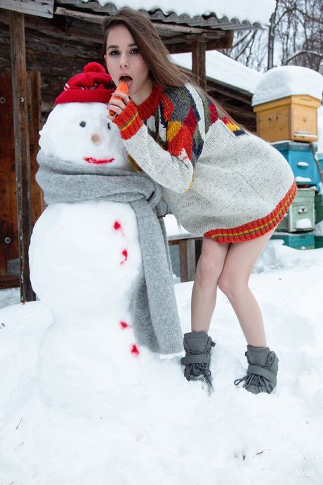 Watch 4 Beauty: 娇小少女利昂娜-米娅(Leona Mia)在雪地里展示长腿并摆出各种姿势