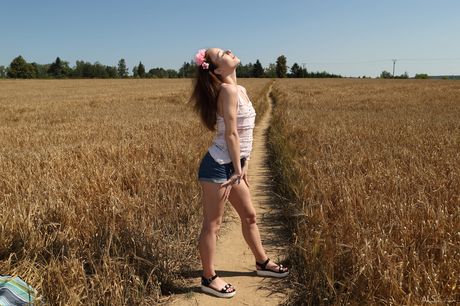 ALS Scan: 娇小少女娜塔在后院用黄瓜玩弄阴部