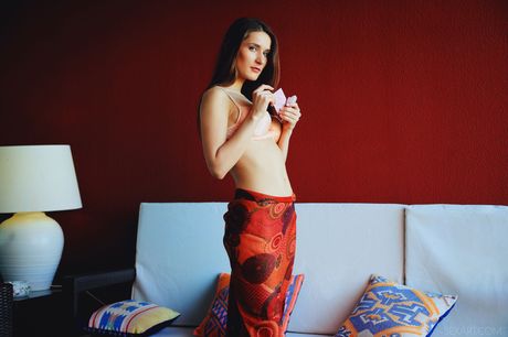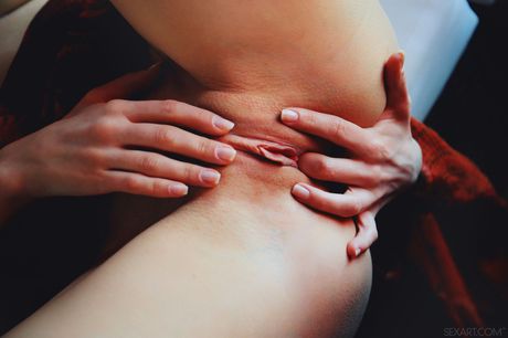 Sex Art: 漂亮女孩叶琳娜在脱掉内衣后用手指插入自己的阴部