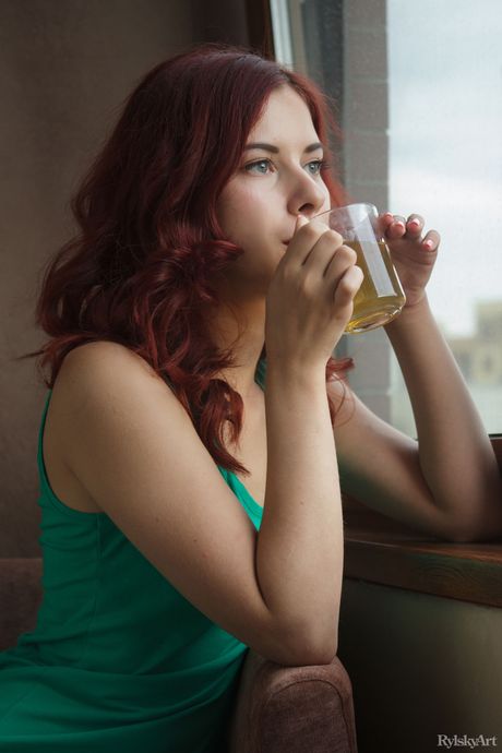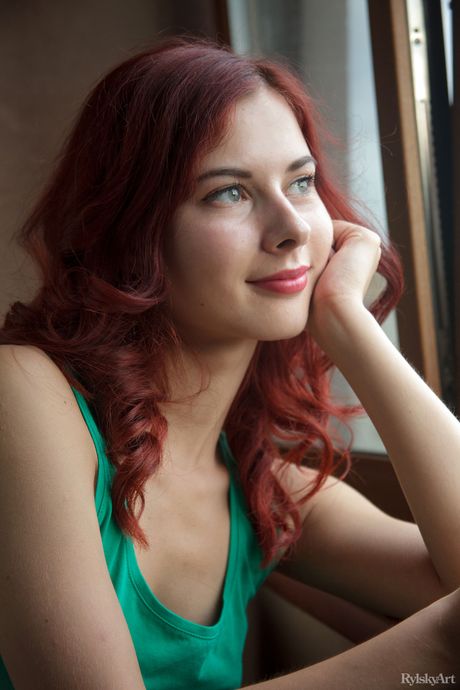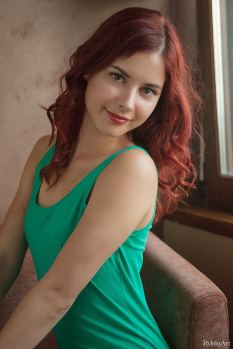Rylsky Art: 红发少女珍珠阿米脱掉黑裙,摆出裸体独舞姿势