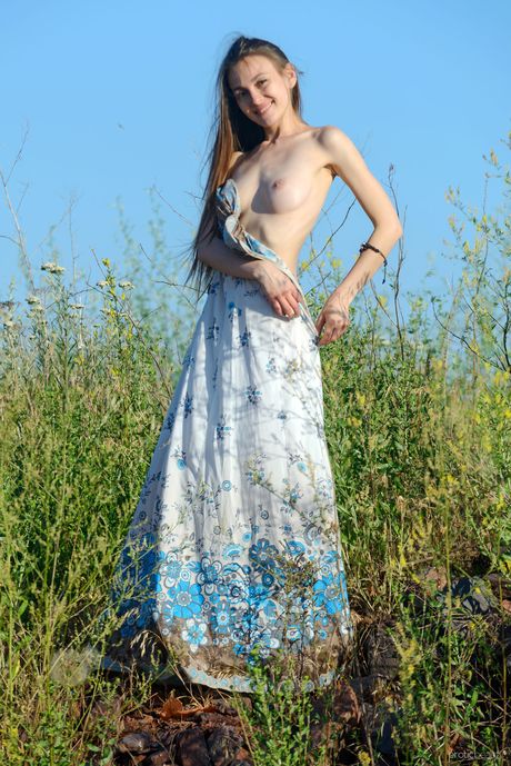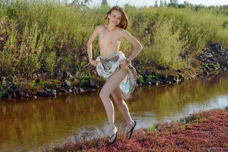 Erotic Beauty: 赛琳在溪边脱下长裙,露出苗条身材