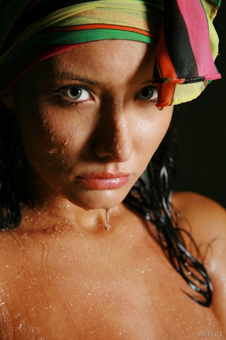 Met Art: 性感业余少女 Sasha G 赤身裸体摆出涂油姿势