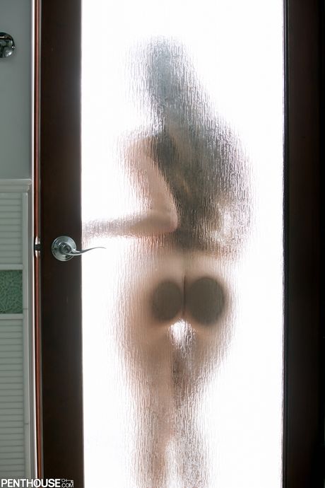 Penthouse Gold: 性感的黑发女孩艾比-克罗斯在淋浴中清洗身体并一丝不挂