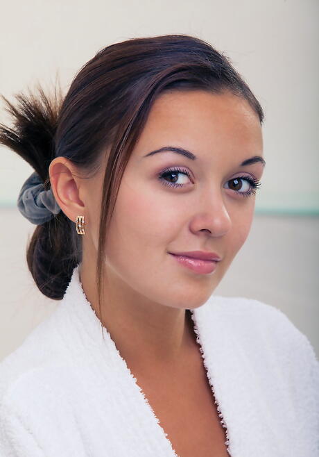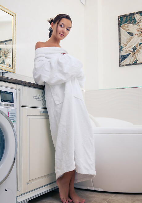 Met Art: 性感的黑发少女维斯林在浴室里露出小乳房并张开双腿