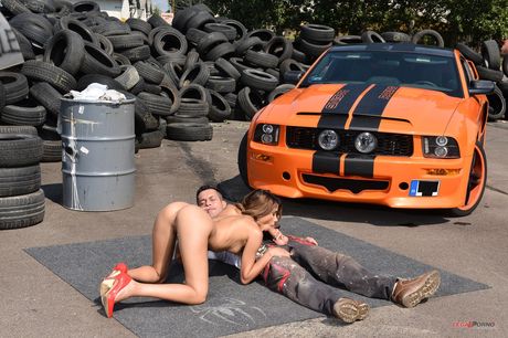 Porn World: 性感拉丁裔宝贝尼科尔斯的阴部被机械师舔干