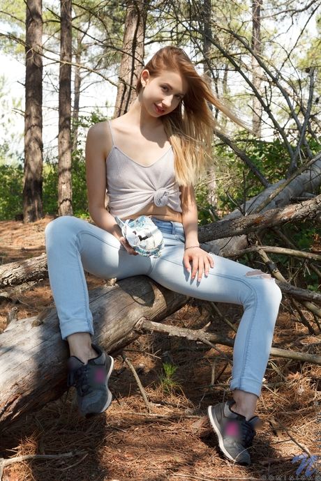 Nubiles: 瘦削的金发女郎多米尼克在阳光明媚的户外脱衣自慰