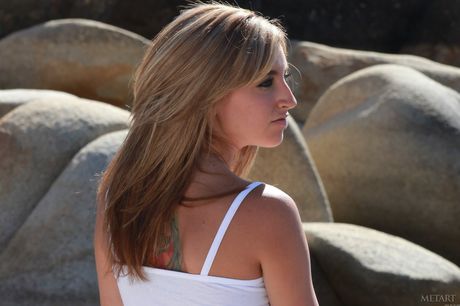 Met Art: 瘦弱的金发少女 Nikole A 在岩石海滩上赤身裸体