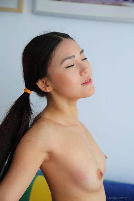 Eternal Desire: 俄罗斯美女 Kimiko 裸体展示她的小乳房和剃光的阴部
