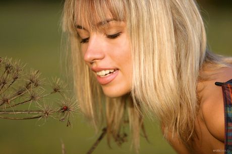 Erotic Beauty: 俄罗斯性感模特娜塔莉亚-B 在户外赤裸上身,展示她的小乳房