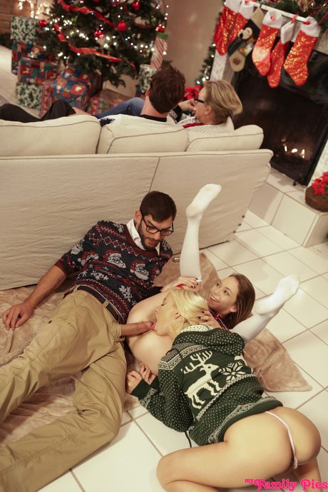 Nubiles Porn: 苗条少女安吉尔-斯莫尔斯和肯齐-里夫斯在平安夜上演三人行