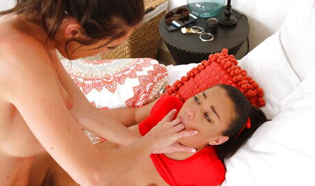 Moms Lick Teens: 身材苗条的女孩 Amara Romani 和 Silvia Saige 穿着漂亮的裙子,舔舐多汁的阴部,享受女同性恋剪刀手的乐趣