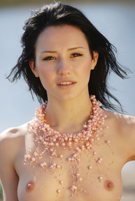 Erotic Beauty: 苗条少女 Eleonora B 在河中赤裸上身,展示她的小乳房和小脚丫