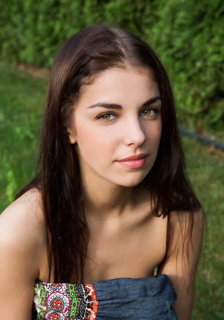 Met Art: 身材苗条的乌克兰黑发少女 Evita Lima 穿着花哨的裙子,喜欢户外恋足癖