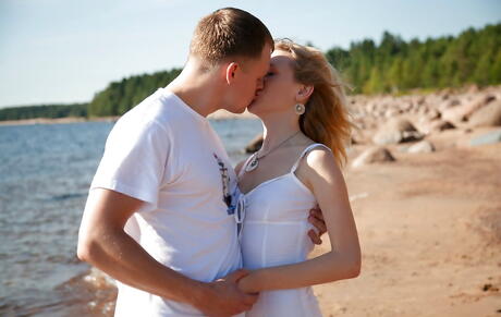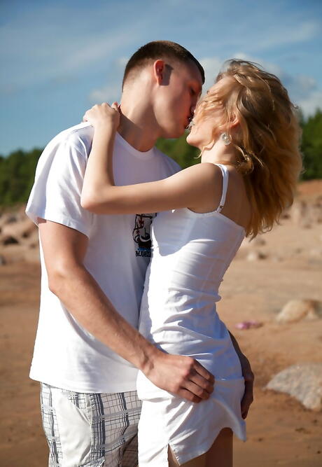 Petite HD Porn: 身材苗条的金发少女玛丽安娜穿着性感内裤,在海滩上上演 xxx 性交和口交场景