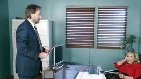 Big Tits At Work: 穿着丝袜的美国金发美女奥利维亚-奥斯汀(Olivia Austin)在办公室热辣吸吮后被操在光秃秃的阴户里