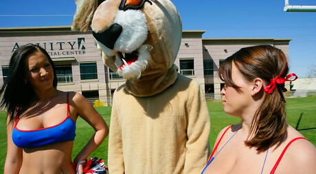 Big Tits At School: 闷骚女孩 Jayden Jaymes 和 Brandy Talore 在户外上演精彩的三人性爱场景