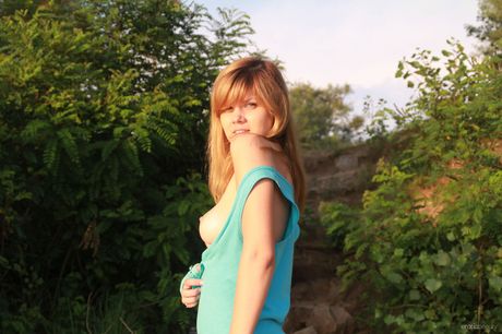 Erotic Beauty: 身材苗条的少女 Agni A 在沙滩上摆出裸体姿势,展示她的大奶子