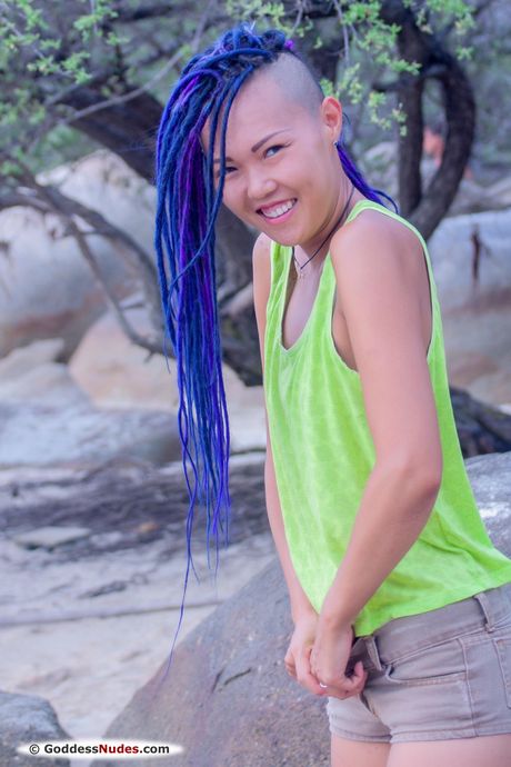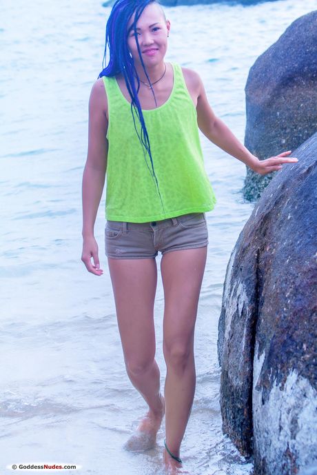 Goddess Nudes: 甜美的朱莉在沙滩上脱掉短裤,露出性感的身体