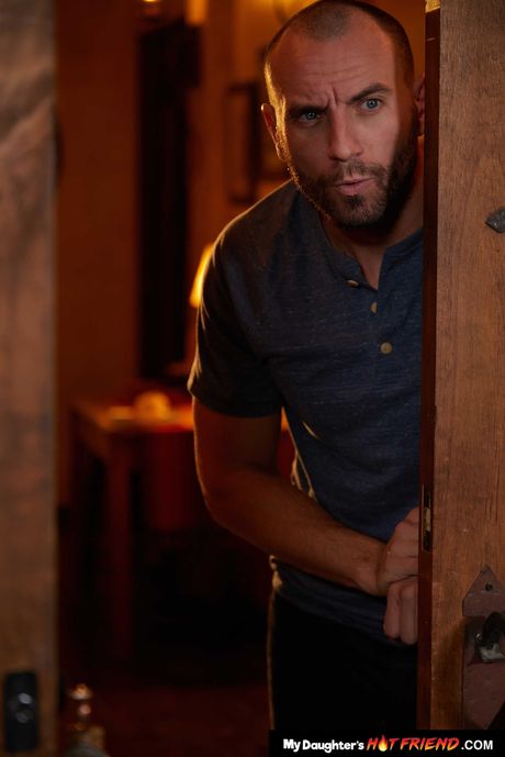 Naughty America: 纹身金发女郎安雅-奥尔森(Anya Olsen)的多毛阴部被一名男子舔舐并勃起