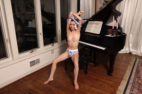 ALS Scan: 瘦弱少女杰西卡-玛丽在剃光的阴部小便和自慰
