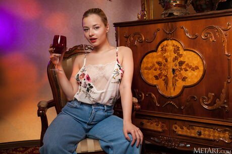 Met Art: 乌克兰美女比安卡-贝尔(Bianca Bell)在卧室脱下牛仔裤后一丝不挂