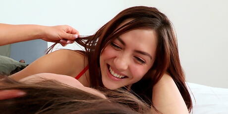 We Live Together: 非常迷人的美女阿丽莎-里斯(Alyssa Reece)和卡西-莱恩(Cassie Laine)穿着内衣,在火热的女同性恋性爱中舔舐粉红色的阴部