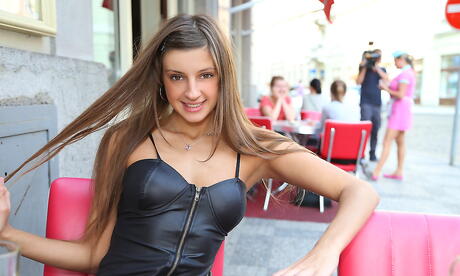 Watch 4 Beauty: 非常迷人的辣妹 Melena A 裸露小乳房,张开双腿,在户外活动