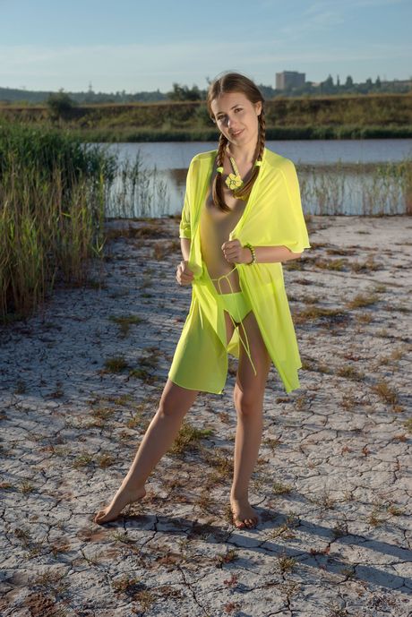 Erotic Beauty: 年轻的金发女郎赫里赞特玛在沙滩上赤身裸体