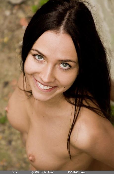 Domai: 年轻的金发女郎 Vik 在岩石上独自摆出全裸姿势