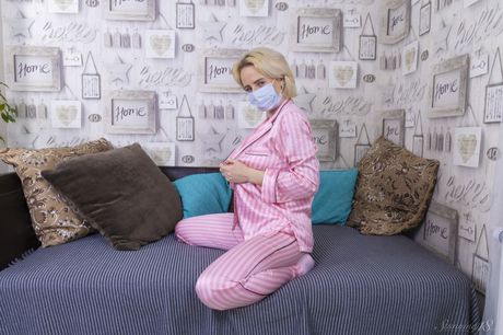Stunning 18: 黑发少女汉娜-雷伊(Hanna Rey)赤裸上身,穿着过膝袜,用手指抚摸自己粉红色的阴部